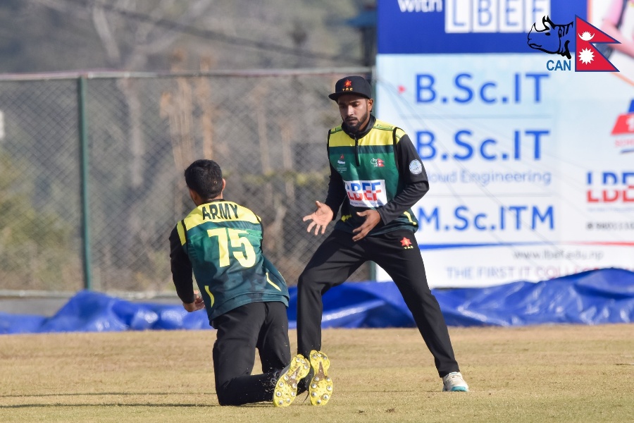 आर्मीका ओपनरद्वय इमरान शेख र सन्तोष कार्कीले ३२/३२ रन बनाए। सन्तोष भने अविजित रहे। कुशल मल्ल ७ बलमा ४ चौका र १ छक्का प्रहार गर्दै २२ रनमा अविजित रहे।