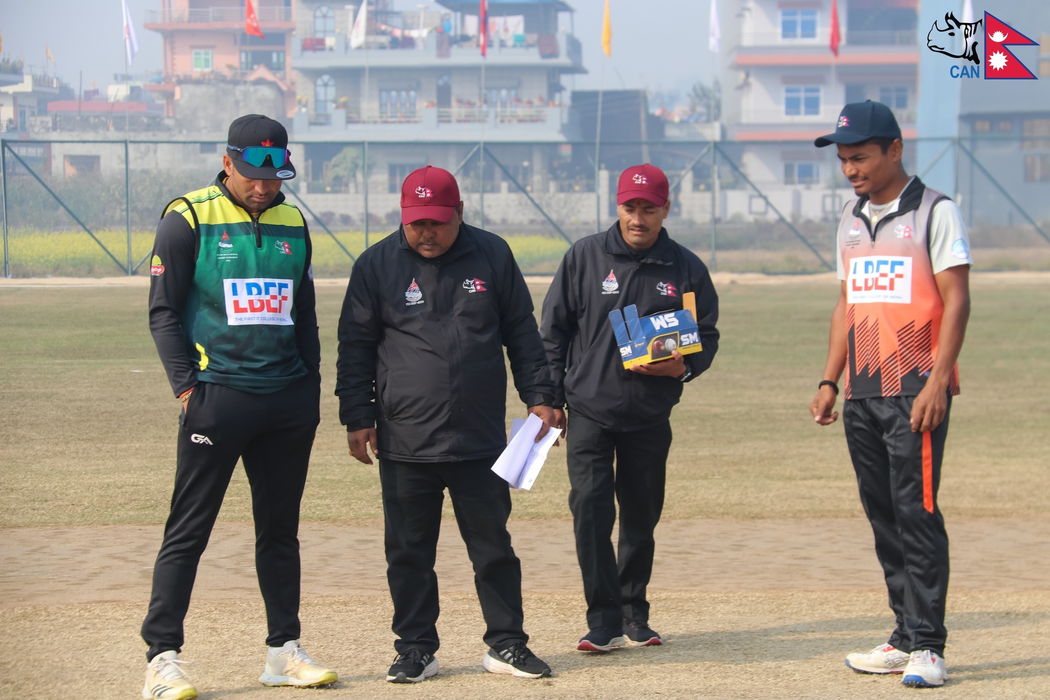 त्यसअघि भैरहवास्थित सिद्धार्थ क्रिकेट मैदान, सिद्धार्थनगरमा टस हारेर पहिला ब्याटिङ थालेको एपीएफले ३२.४ ओभरमा सबै विकेट गुमाउँदै १२१ रन बनायो।