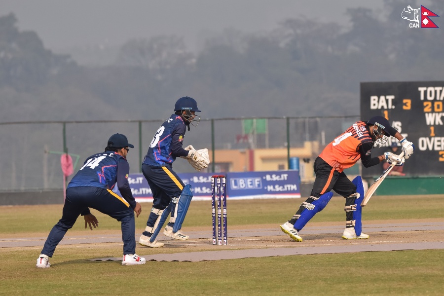 अमित श्रेष्ठ १५ र आरिफ शेख १६ रनमा अविजित रहे। अर्जुन साउद र दिलिप नाथले भने राम्रो प्रदर्शन गर्न सकेनन्। मधेशका रञ्जित कुमार र अरनिको यादवले २/२ विकेट लिए।
