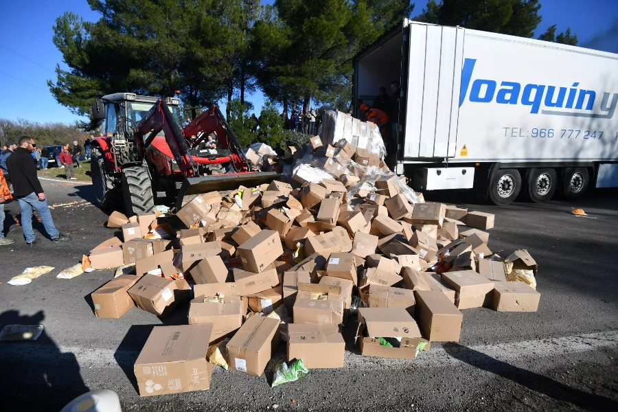 युरोपेली संघको सबैभन्दा ठूलो कृषि उत्पादक फ्रान्सको दोस्रो र तेस्रो ठूलो शहर मार्सेली र लियोनलाई जोड्ने राजमार्ग अवरुद्ध गर्न किसानले गोलभेँडा, बन्दा र काउलीका क्रेट सडकमा फालेका थिए।