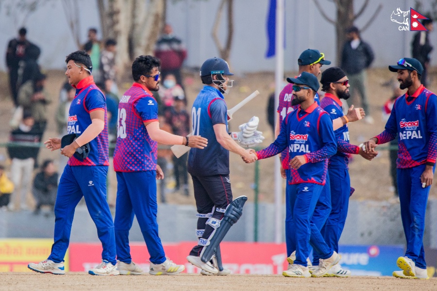 त्यसअघि कीर्तिपुरस्थित त्रिवि क्रिकेट मैदानमा टस हारेर पहिला ब्याटिङ थालेको नेपालले ३७.१ ओभरमा सबै विकेट गुमाउँदै १६८ रन बनायो। नेपालका लागि ओपनर आशिफ शेखले सर्वाधिक ५८ रन बनाए। भीम सार्कीले २६ रन बनाउँदा ६ बल खेलेका ललितनारायण राजवंशी अविजित रहे।