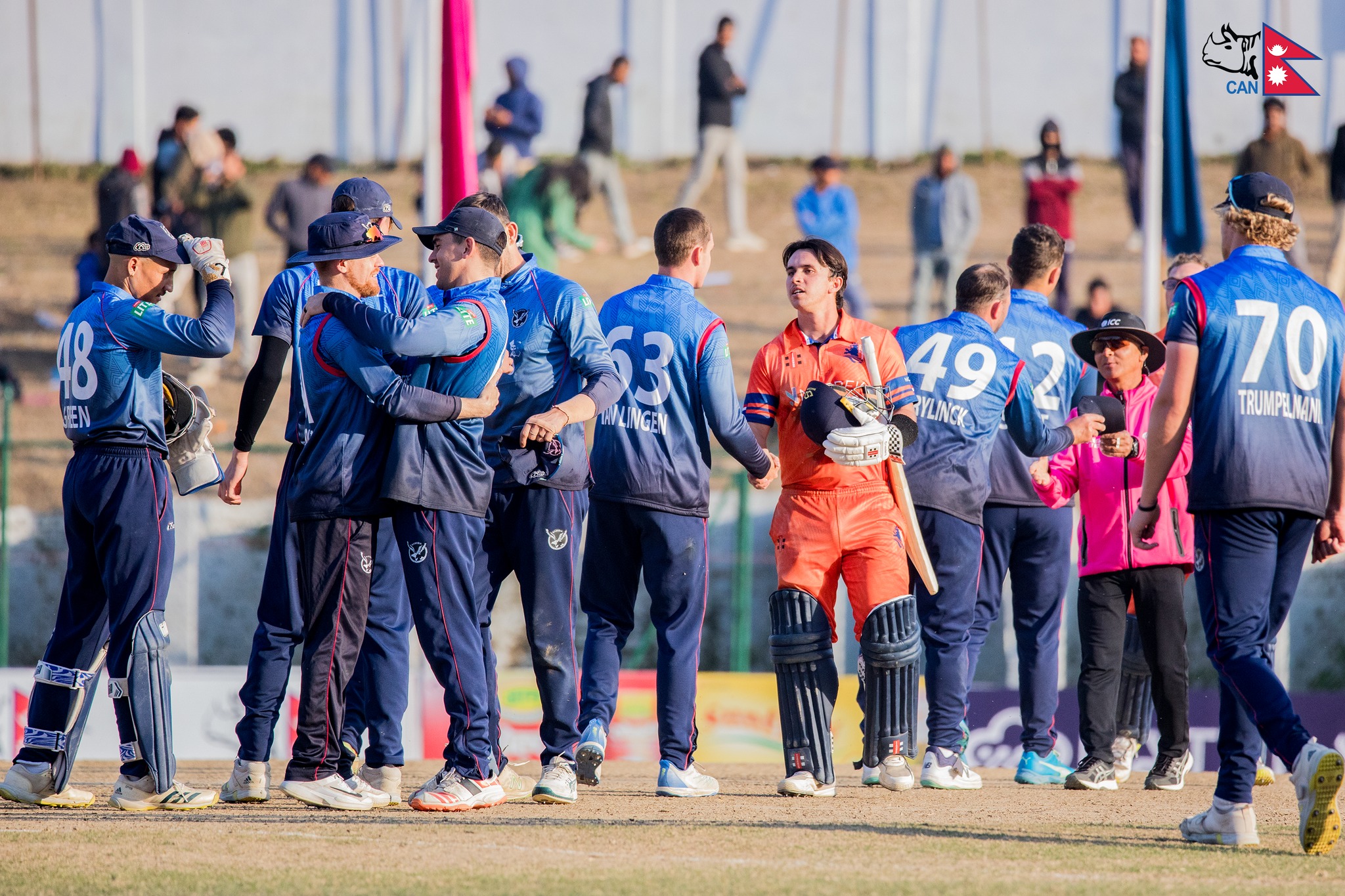 नामिबियाले दिएको २०४ रनको लक्ष्य पछ्याएको नेदरल्यान्ड्सले ४३.५ ओभरमा सबै विकेट गुमाउँदै १७९ रन मात्रै बनाउन सक्यो।