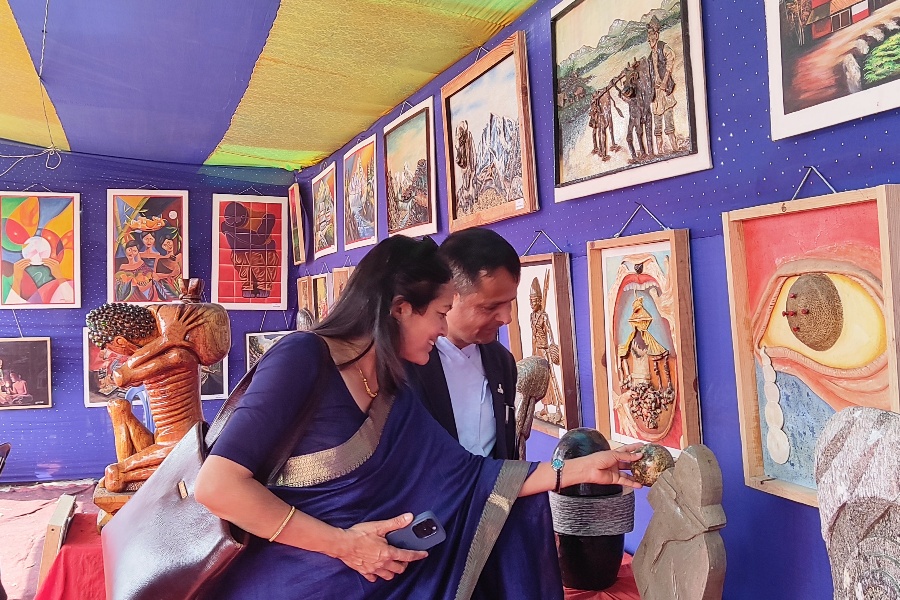 विगत दुई दशकदेखि कला क्षेत्रमा समर्पित नेम्वाङका ४० वटा तेल चित्र, छाम्ने चित्र र मूर्ति कला प्रदर्शनीमा राखिएका थिए। आँखा देख्न नसक्नेले पनि छामेर थाहा पाउन सक्ने एक दर्जन चित्र प्रदर्शनीमा थिए। कार्टुनिस्ट राजवंशीका दुई दर्जन व्यंग्य चित्र प्रदर्शनीमा थिए।