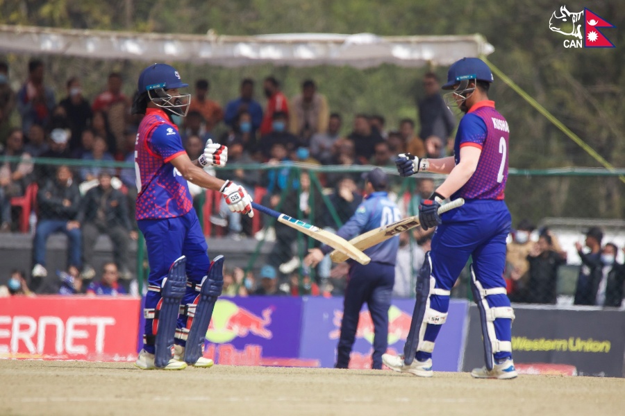 नेपालका लागि कुशल मल्लले ३७ बल खेल्दै एक चौका र चार छक्काको मद्दतमा ५५ रन बनाए। कुशलले आरिफ शेखसँग पाँचौ विकेटका लागि ८५ रनको साझेदारी गरे। आरिफले आउट हुनुअघि २४ बलमा चार चौकाको सहायताले ३१ रन जोडे।