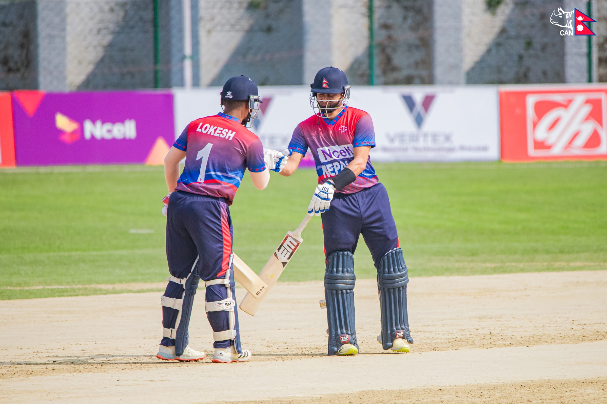 आयरल्यान्ड उल्भ्सले दिएको २२३ रनको लक्ष्य पछ्याएको नेपालले १९.३ ओभरमा सबै विकेट गुमाउँदै २०१ रन मात्र बनाउन सक्यो। नेपालका लागि लोकश बमले शतकीय इनिङ्स खेले। उनले ५६ बलमा ९ चौका र ८ छक्काको मद्दतमा १०६ रन बनाए। आशिफ शेखले २६ बलमा १ चौका र ५ छक्का प्रहार गर्दै ४९ रन बनाए। कप्तान विनोद भण्डारीले १६ रन बनाए भने अन्य नेपाल ‘ए’ टिमका खेलाडीले राम्रो प्रदर्शन गर्न सकेनन्।