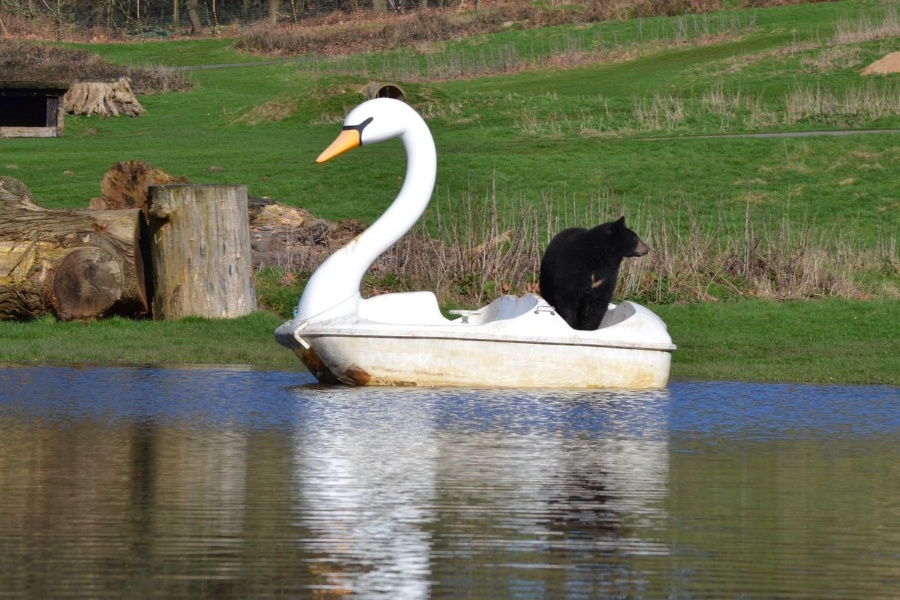 बेलायतको बेफोर्डसायरस्थित 'वोबर्न सफारी पार्क'को तालमा चार युवा भालुले हंसमुखी डुंगामा चढेर सवारीको आनन्द उठाएका छन्।