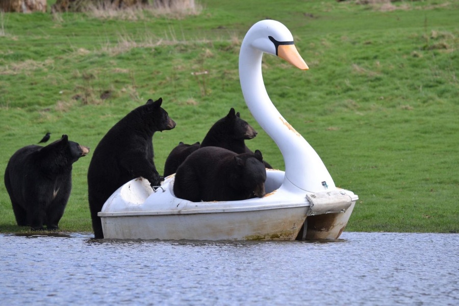 बेलायतको बेफोर्डसायरस्थित 'वोबर्न सफारी पार्क'को तालमा चार युवा भालुले हंसमुखी डुंगामा चढेर सवारीको आनन्द उठाएका छन्।