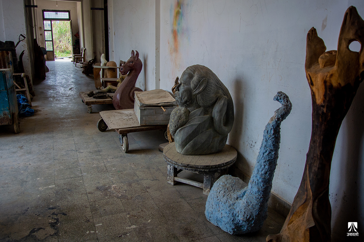 काठमाडौँ– कीर्तिपुरस्थित त्रिभुवन विश्वविद्यालय ललितकला (फाइन आर्ट्स) विभागको अवस्था थाहा पाउन यसको भवन हेरे पुग्छ। आठ वर्षअघिको भूकम्पले हल्लाएर जीर्ण बनाएको भवन अझै मर्मत भएको छैन। भित्ताहरू चर्किएका छन्। वर्षामा छतबाट पानी चुहिन्छ। कोठाभित्र भित्ता र सिलिङमा लेउ लागेको छ। भवनको बाहिरको रङ पनि उडिसकेको कारण कुनै आकर्षण छैन।