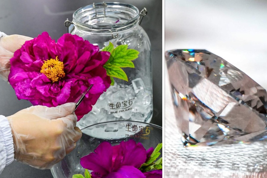चाइना डेली डटकमको रिपोर्टअनुसार वैज्ञानिकहरूले एकप्रकारको फूल रातो पियोनीबाट हिरा बनाएका हुन्। उक्त फूलबाट प्राप्त कार्बन तत्त्वबाट ३ क्यारेटको हिरा बनाएको खबरमा उल्लेख छ। पियोनी एक फूल हो, जुन एशियादेखि युरोप र पश्चिमी उत्तर अमेरिकासम्म पाइन्छ। यो फूललाई ‘फूलकी रानी’ पनि भन्ने गरिन्छ र कतिपयले यसलाई प्रेमको प्रतिक पनि मान्छन्। यो फूल गुलाबी, रातो, पहेँलो, सेतो, बैजनी र नीलो जस्ता धेरै रंगहरूमा फुल्छ।