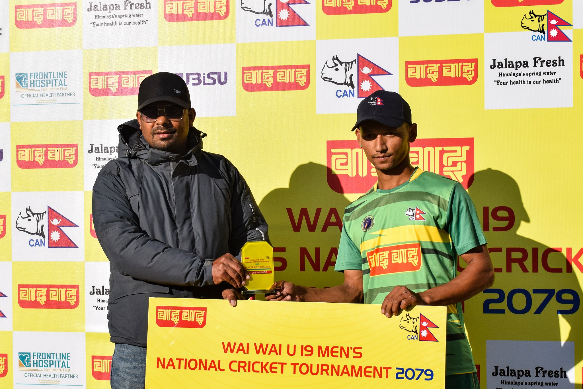 दीपक बोहोराले ११ जोडे। गण्डकीका लागि कप्तान सुवास भण्डारीले ३ तथा सुदीप अर्याल, सचिनराज अधिकारी, अर्जुन कुमाल, सिब्रिन श्रेष्ठ, निर्तिश गिरी र शिशिर भुषालले समान १/१ विकेट लिए।