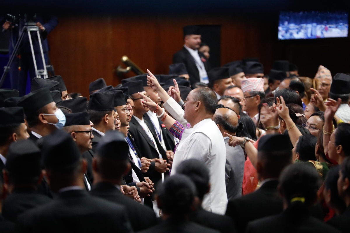 कांग्रेस सांसदको नाराबाजीबीच सभामुख देवराज घिमिरेले प्रधानमन्त्री पुष्पकमल दाहाल ‘प्रचण्ड’लाई राष्ट्रपतिले गरेको सम्बोधनको प्रति टेबुल गर्न समय दिएका थिए।
