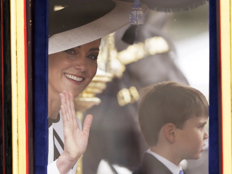 बेलायती राजा चाल्सको जन्मदिनका अवसरमा आयोजित सैन्य परेड ‘ट्रुपिङ द कलर’ अवलोकन गर्न राजकुमारी केट आफ्ना तीन सन्तानसहित बग्गीमा आएकी थिइन्।