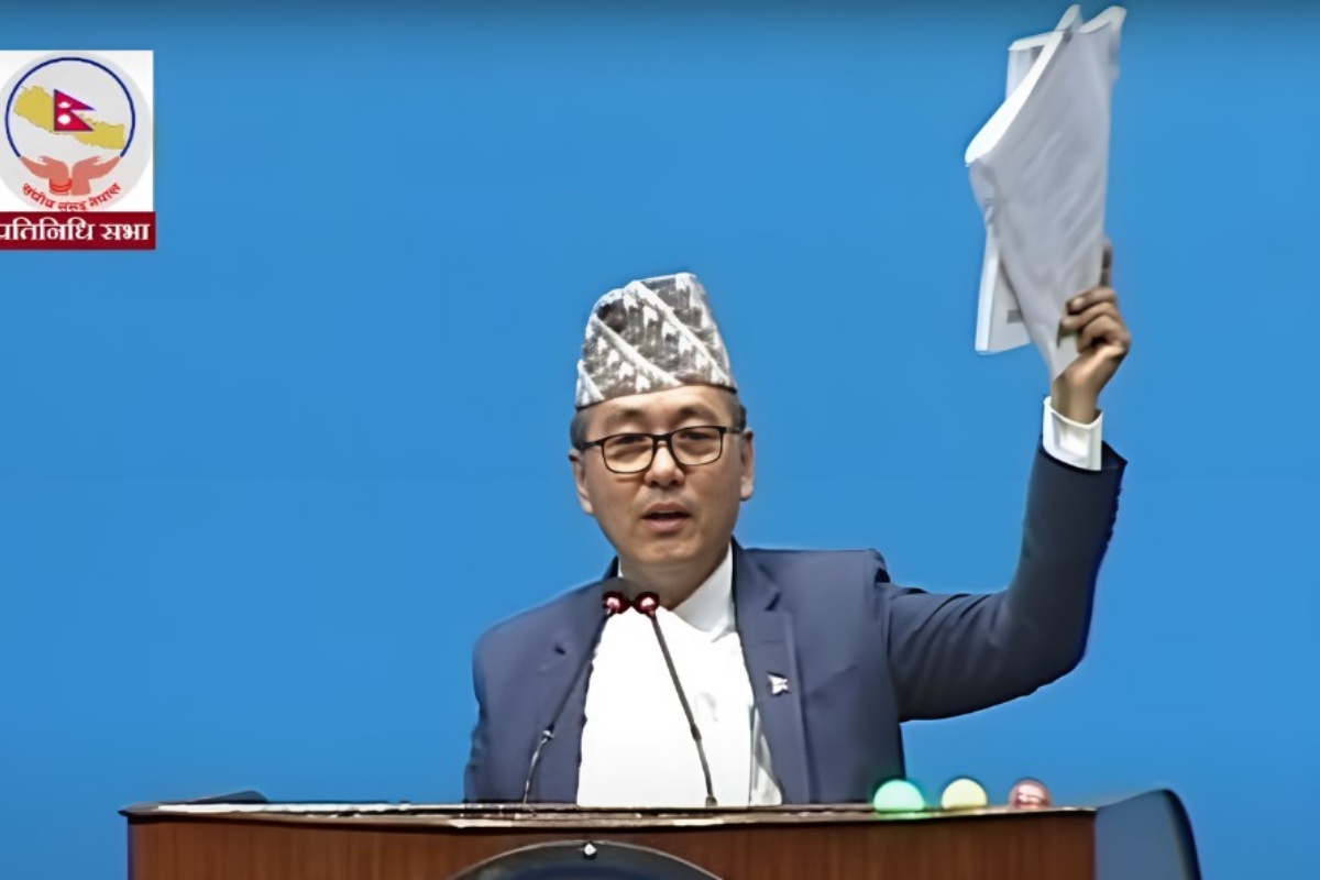 काठमाडौँ– राष्ट्रिय प्रजातन्त्र पार्टीका अध्यक्ष राजेन्द्र लिंदेनले प्रतिनिधिसभाको रोस्टममै उभिएर भौतिक पूर्वाधार मन्त्रालयको बजेट पुस्तिका च्यातेका छन्।