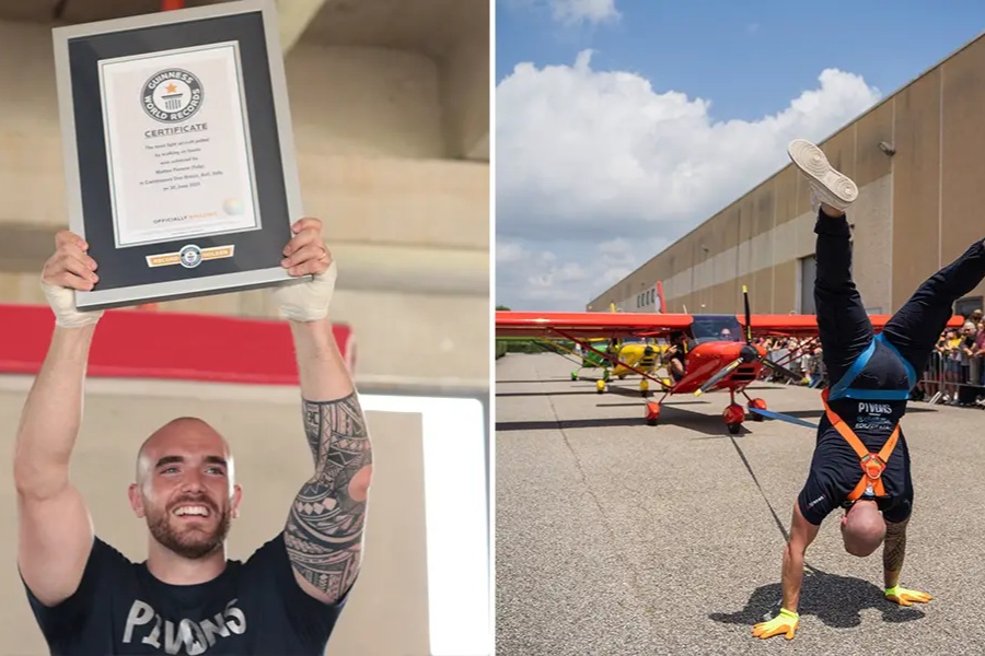 आफ्नो नाममा विश्व कीर्तिमानी राख्न मान्छेले अनेक तौरतरिका अपनाउँछन्। इटालिका एक व्यक्तिले त तीन वटा विमान तानेर विश्व कीर्तिमानी बनाएका छन्, त्यो पनि हातले टेकेर। गत जुन ३० मा उनले गिनिज वर्ल्ड रेकर्ड कायम गरेका हुन्।