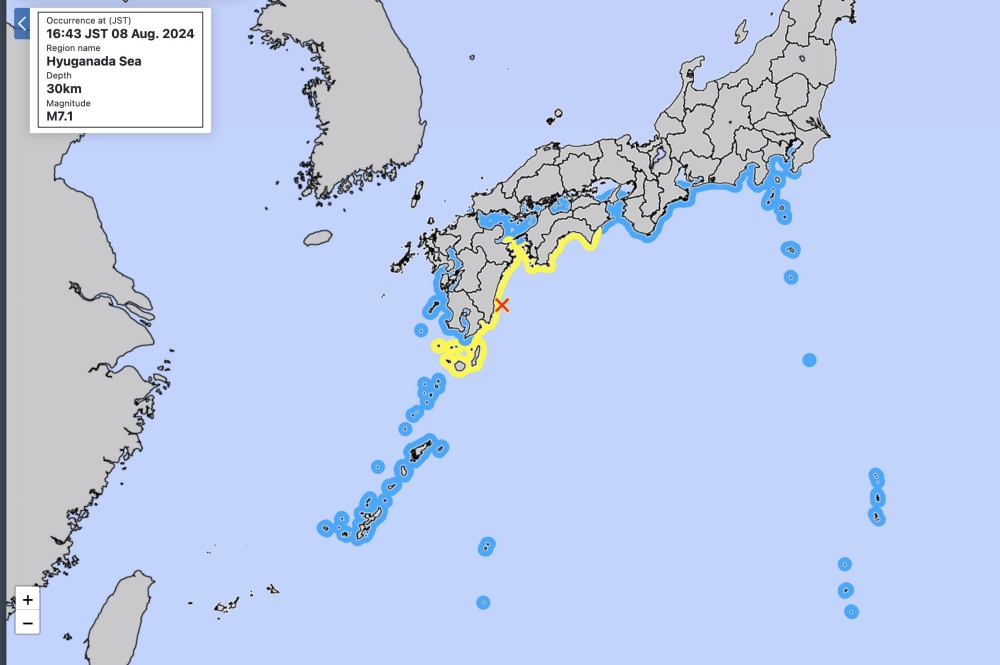 अमेरिकी भौगर्भिक सर्वे (यूएसजिएस)ले भूकम्पको केन्द्र क्युशुको मियाजाकी क्षेत्रमा ३३ किलोमिटरको गहिराइमा रहेको बताएको छ। जापानी प्रसारक एनएचके वर्ल्डका अनुसार भूकम्पपछि मियाजाकी, कोची, ओइटा, कागोशिमाजस्ता क्षेत्रमा सुनामीको चेतावनी जारी गरिएको छ।