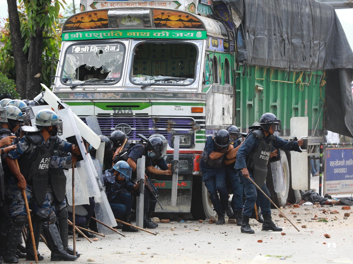 ट्राफिक प्रहरीले सडकमा जथाभाबी ‘स्पिड चेकिङ’ गरेका कारणले दुर्घटना भएको भन्दै भीड ट्राफिक प्रहरीमाथि नै जाइ लाग्यो। सडकमा गति मापन गर्न बसेका ट्राफिक प्रहरीको भागाभाग भयो। आक्रोशित भीडले ट्रक तोडफोडसँगै आगजनीको प्रयाससमेत गर्यो। त्यसपछि आक्रोशित भीड र प्रहरीबीच ढुंगा हानाहान भयो। स्थिति निकै तनावग्रस्त बन्यो।