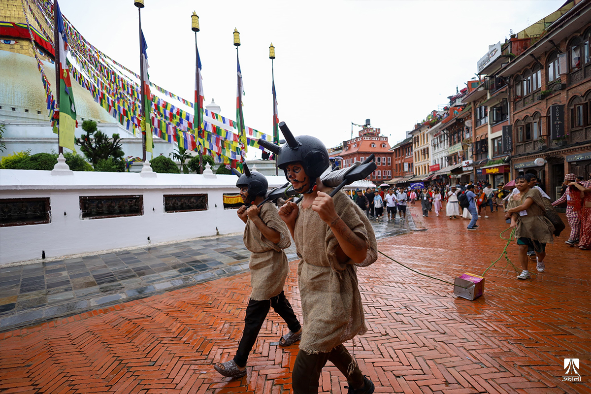 काठमाडाैँ– प्रत्येक वर्ष गाईजात्राको भोलिपल्ट हुने रोपाइँजात्रा काठमाडौँस्थित बौद्धमा मनाइएको छ। आफ्नो संस्कृति र परम्परा संरक्षणको लागि औपचारिक रूपमा मनाइने यस जात्रालाई बौद्ध क्षेत्रको मौलिक पर्वका रूपमा पनि लिइन्छ।