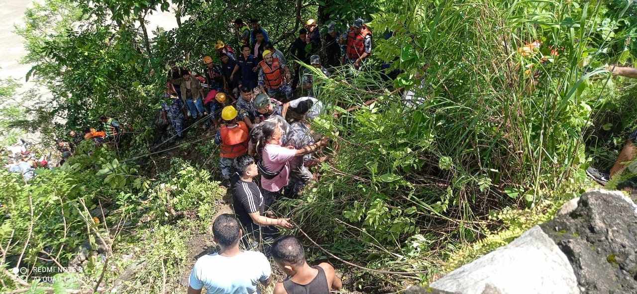 घाइतेलाई उपचारका लागि स्थानीय अस्पतालमा पठाइएको र उद्धार कार्य जारी रहेको थापाले जानकारी दिए। नेपाल प्रहरी र सशस्त्र प्रहरीको टोलीले उद्धार गरिरहेका छन्।