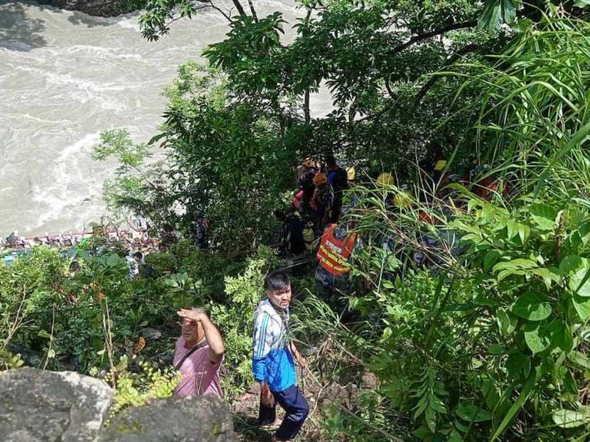 शुक्रबार बिहान पोखराबाट काठमाडौँका लागि छुटेको यूपी५३ एफटी ७६२३ नम्बरको बस खसेको हो। बस नदी किनारमा अड्किएको छ।