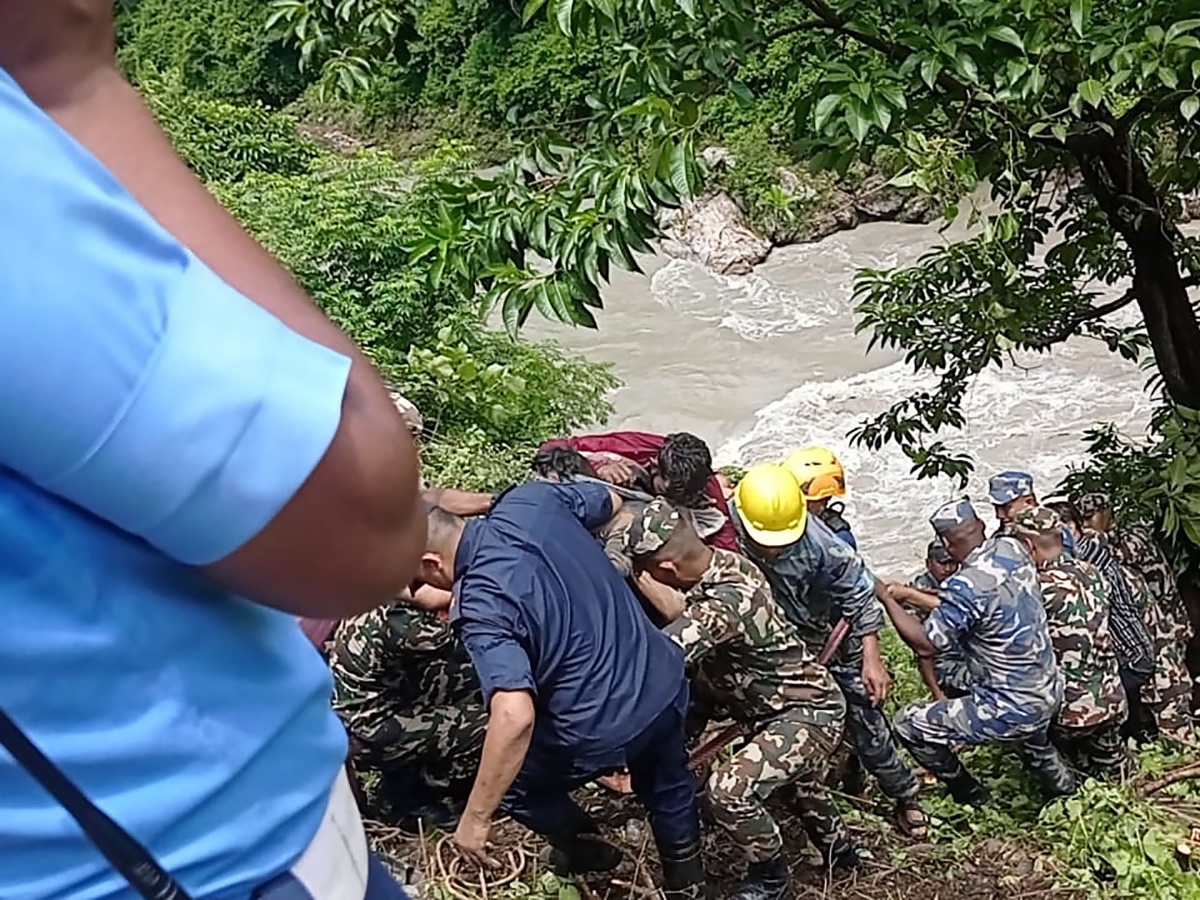 घाइतेलाई नेपाली सेनाको हेलिकप्टरमार्फत काठमाडौँ ल्याइएको छ। उनीहरूको महाराजगन्जस्थित त्रिवि शिक्षण अस्पतालमा उपचार भइरहेको सशस्त्र प्रहरी बल नेपालले जनाएको छ। प्रहरीका अनुसार सो बसमा चालक र सहचालकसहित ४३ यात्रु सवार थिए।