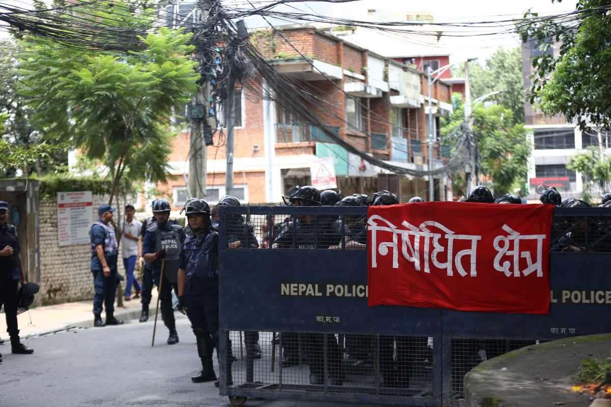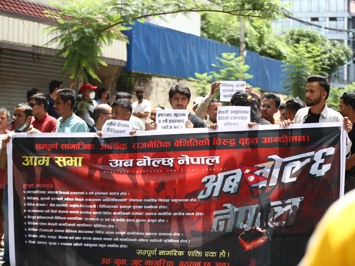 काठमाडौँ– राजनीतिक बेथितिविरुद्ध प्रधानमन्त्रीको सरकारी निवास बालुवाटार क्षेत्रमा विरोध प्रदर्शन गरिएको छ। सम्पूर्ण सामाजिक, आर्थिक, राजनीतिक बेथितिविरुद्ध बृहत् आन्दोलनको ब्यानरमा शनिबार विरोध प्रदर्शन गरिएको हो।