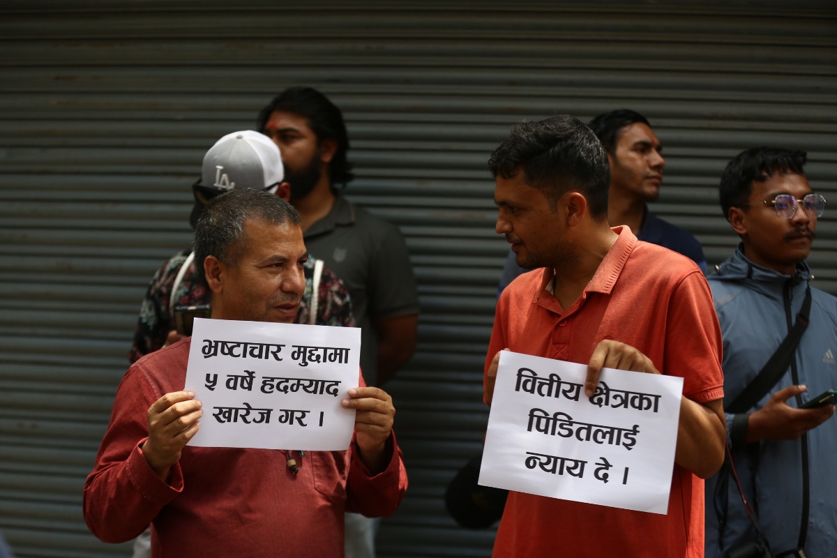 प्रदर्शनमा सहभागीहरूले भ्रष्टाचारीलाई जोगाउने नियतले ल्याइएको पाँचवर्षे हदम्याद खारेज गर्न माग गरेका छन्। त्यस्तै, गिरिबन्धु, भुटानी शरणार्थी, ललिता निवास लगायतका अनियमितता काण्डमा यथाशीघ्र निष्पक्ष अनुसन्धानको माग गरेका छन्।