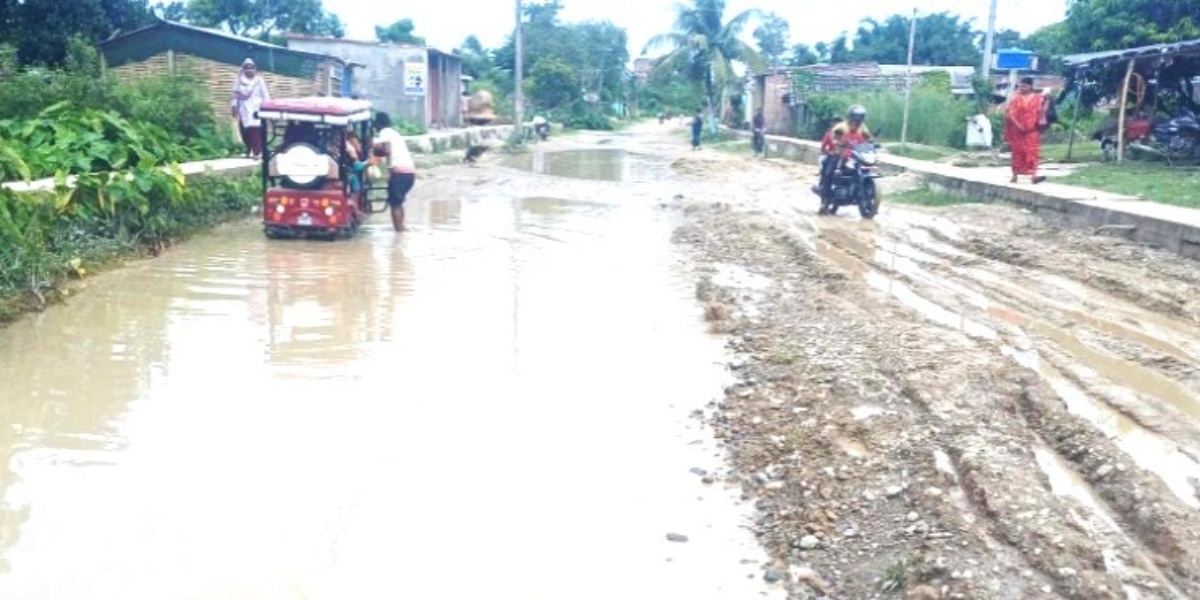 सडकमा जताततै खाल्डाखुल्डी मात्रै छन्। पानी जमेर पोखरी बनेको छ। ठाउँ–ठाउँमा भत्किएर पैदल हिँड्नसमेत सकिने अवस्था छैन।