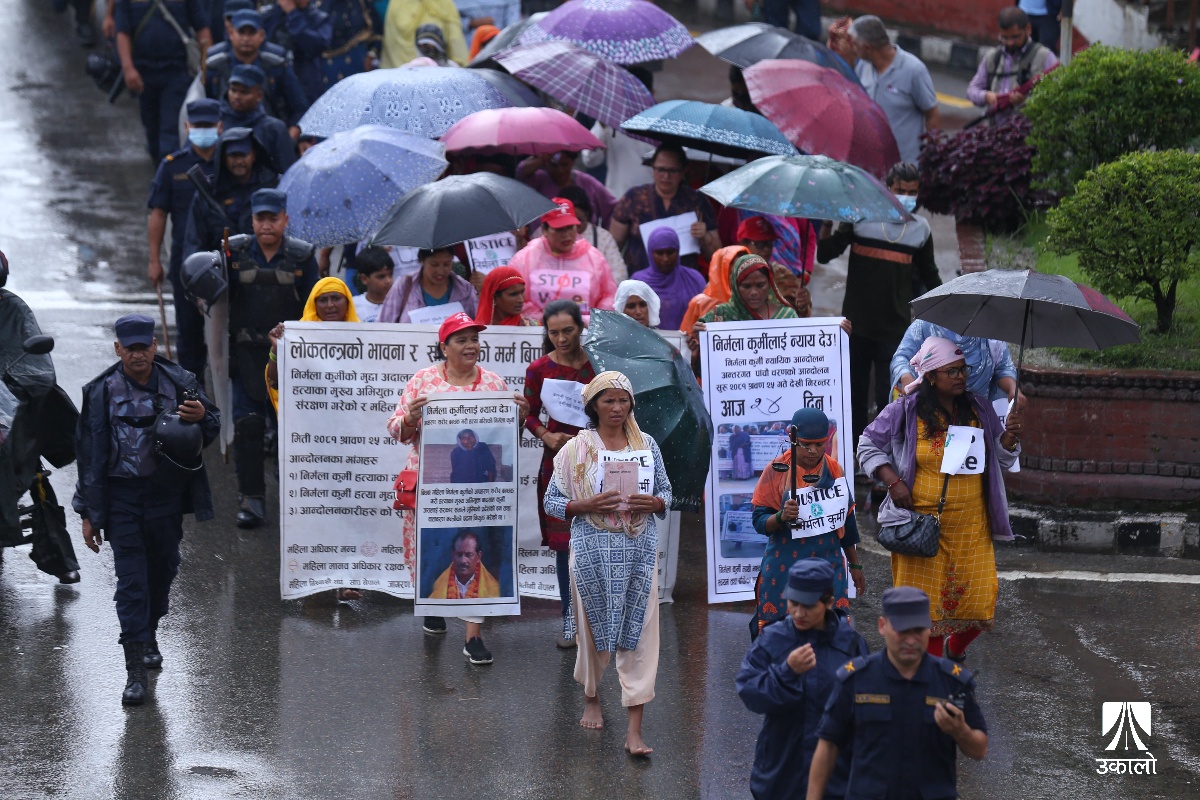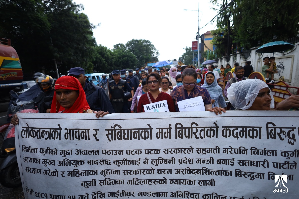 अधिकारकर्मीले निर्मला कुर्मीको न्यायका लागि भन्दै आइतबार माइतीघर–बालुवाटार मार्च गरेका छन्।