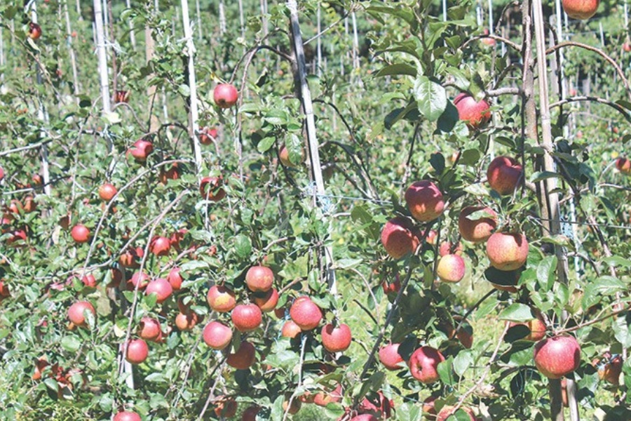 सडकको बायाँपट्टि ठूलो क्षेत्रफलमा लटरम्म फलेका थरिथरि जातका स्याउले भरिएको बगान फलामे तारले घेरिएको छ। वर्षौंअघिदेखि मस गाउँमा रैथाने जातका स्याउखेती गरिँदै आए पनि अपेक्षित उत्पादन हुन नसकेपछि विदेशबाट बिरुवा ल्याएर लगाउन थालिएको हो।