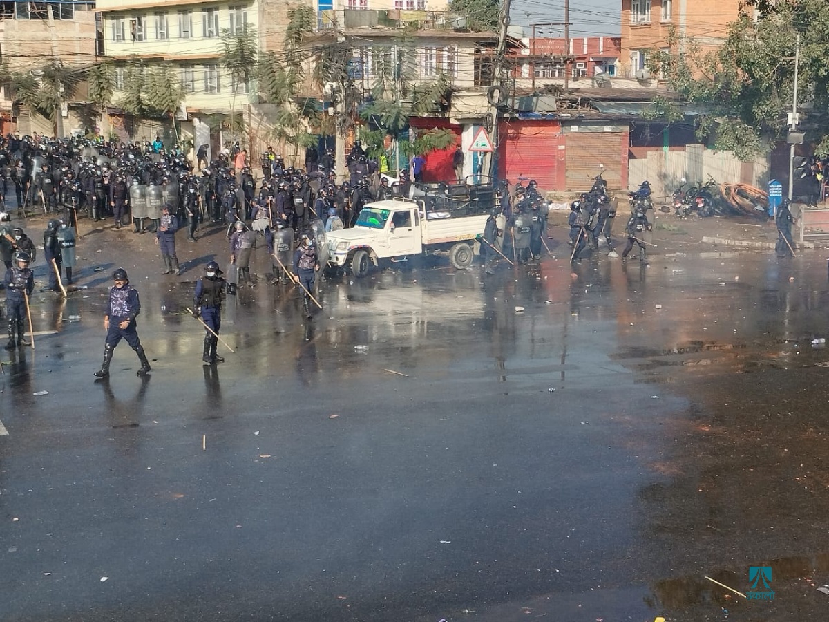 उनीहरू कालीमाटीतर्फ अगाडि बढेपछि प्रहरीले बल प्रयोग गरेको हो। प्रहरीले करिब एक दर्जन टियर ग्यास प्रहार गरेर भिडलाई रोक्ने प्रयास गरेको छ। त्यस्तै प्रदर्शनकारीमाथि पानीको फोहोरा पनि प्रहार गरेको छ। त्यस्तै, प्रदर्शनकारीले पनि सुरक्षाकर्मीमाथि ढुंगा, इट्टालगायतका वस्तु फ्याकेका छन्।
