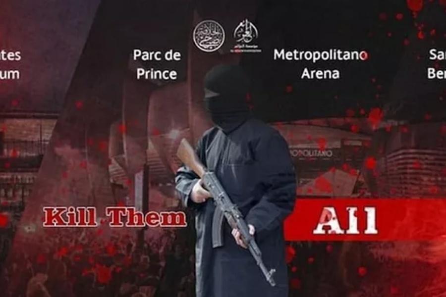 उक्त समूहको ‘मिडिया आउटलेट’ अल–अजाइम फाउन्डेसनमार्फत जारी गरिएको पोस्टरमा लन्डनको इमिरेट्स स्टेडियम, पेरिसको पार्क डे प्रिन्स र म्याड्रिडको स्यान्टियागो बर्नाउ र मेट्रोपोलिटानो एरेनासलाई लक्षित गरिएको छ। उक्त पोस्टरको तस्वीरमा कालो पहिरन लगाएका एक व्यक्तिले बन्दुक बोकेका छन्, जसको ब्याकग्राउन्डमा मुस्लिम विरोधी प्रदर्शनको तस्वीर छ। पोस्टरमा रातो अक्षरले लेखिएको छ, “तिनीहरू सबैलाई मार।”