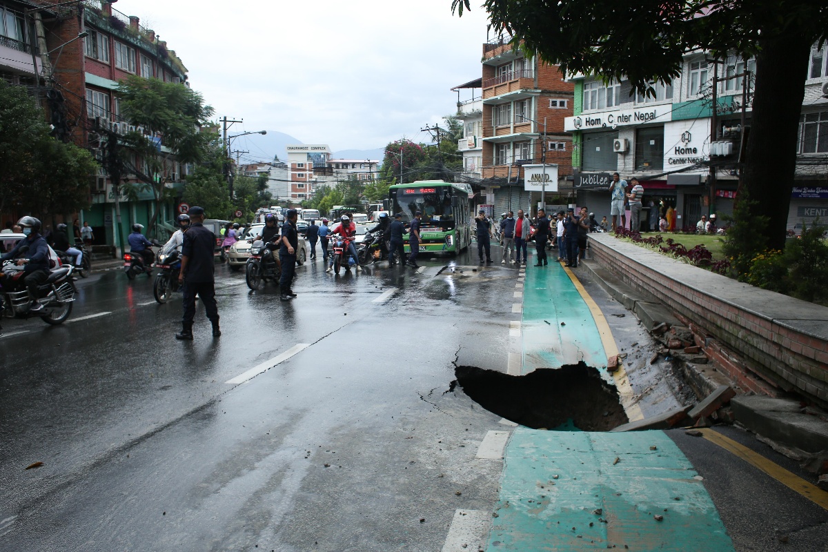 साउन २४ गते दरबारमार्गबाट कमलादी हुँदै कमलपोखरी जाने सडकमा करिब ५ मिटर गहिरो भ्वाङ परेको थियो।