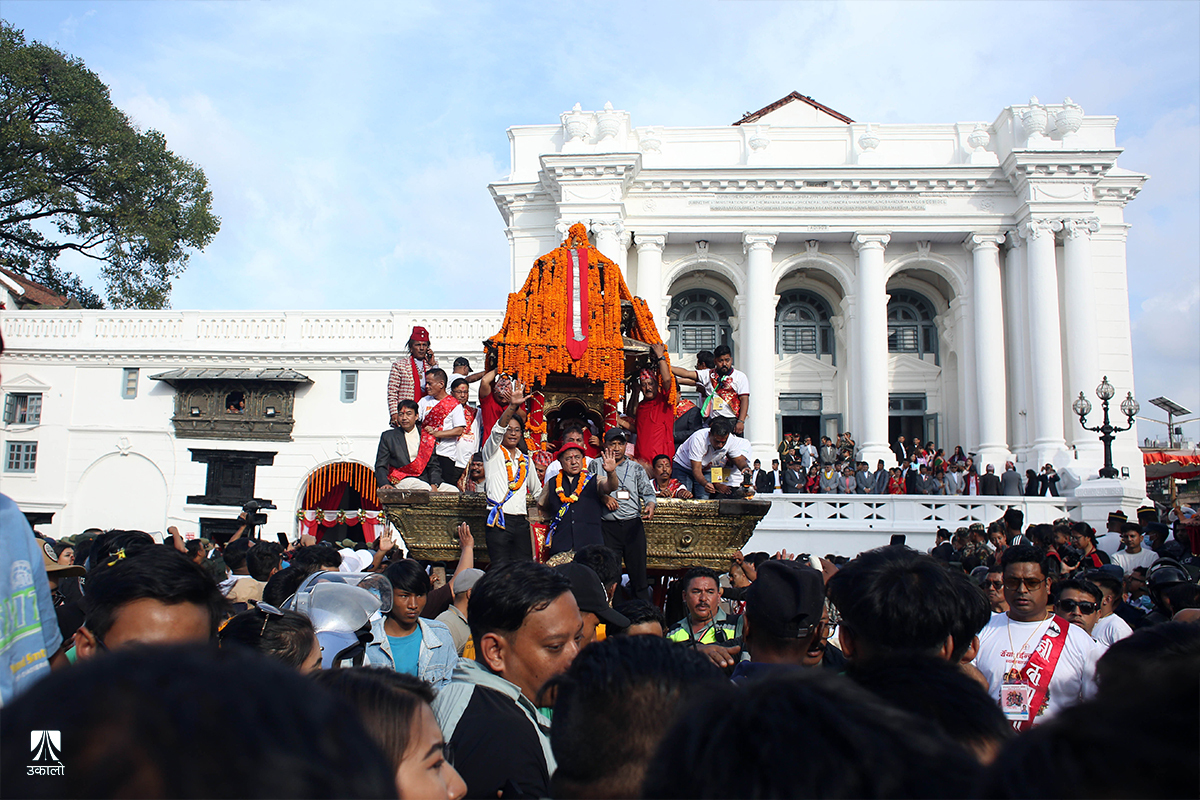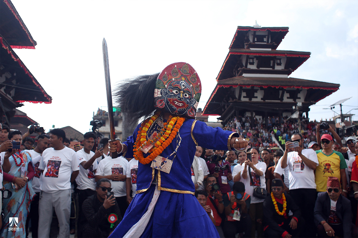 काठमाडाैँ– इन्द्रजात्राको प्रमुख दिन मंगलबार काठमाडाैँको वसन्तपुरमा जात्रा मनाउन आउनेहरूको भीड लागेको छ।