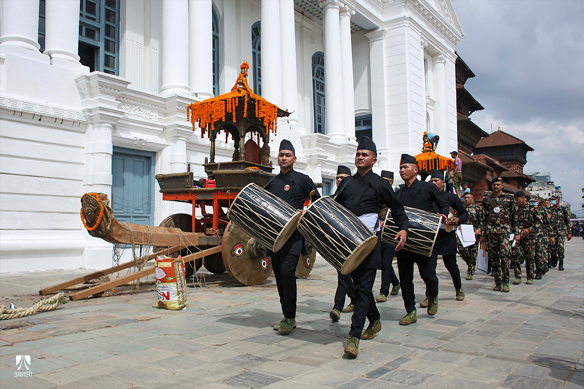 भाद्र शुक्ल द्वादशीका दिन बिहान हनुमानढोका दरबार क्षेत्रमा इन्द्रध्वजोत्थान गरी शुरू भएको इन्द्रजात्राको आज मुख्य दिन हो। राष्ट्रपति, प्रधानमन्त्रीलगायत विशिष्टदेखि सर्वसाधारणले इन्द्रजात्राको अवलोकन गरेका छन्। जीवित देवी कुमारी, भैरव र गणेशको रथ तान्ने पहिलो दिन देशका प्रमुखहरुको पनि उपस्थिति रहने परम्पराअनुसार विशिष्ट व्यक्तिहरू हनुमानढोका क्षेत्र पुगेका हुन्।