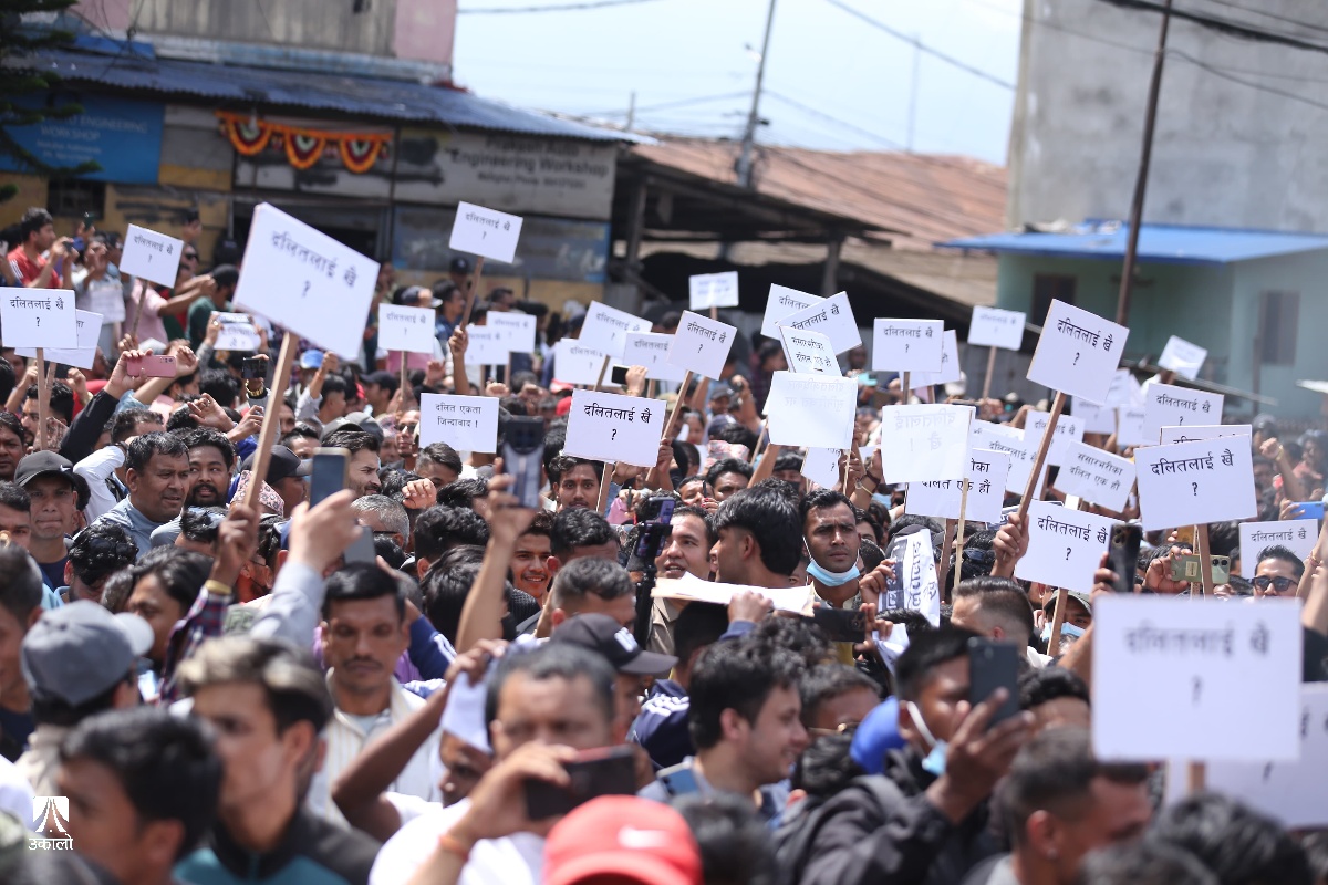 दलितका लागि दलित अभियान नेपालको समन्वयमा अभियानका संयोजक खगेन्द्र सुनारसहितका युवाले बिहीबार माइतीघरदेखि नयाँ बानेश्वरसम्म विरोध प्रदर्शन गरेका हुन्। उनीहरूले दलितलाई समान अवसर नभएको भन्दै विभिन्न नारासमेत लगाएका छन्।