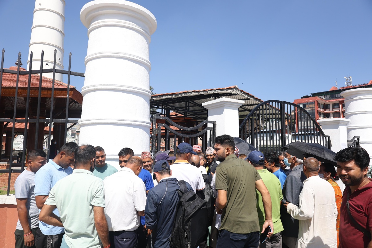 “अहिले एकैपटकमा करिब एक हजारले अवलोकन गरिरहनुभएको छ,” उनले भने, “लाइन लामो छ, दैनिक जम्मा छ सयका लागि खुलाउने भनेका थियौँ। भीड बाक्लो भयो। तसर्थ तोकिएभन्दा बढीले धरहरा चढिसकेका छन्। अब ३ः३० बजेसम्म भित्र छिर्न दिइन्छ, ४ः३० बजे बन्द हुन्छ।”