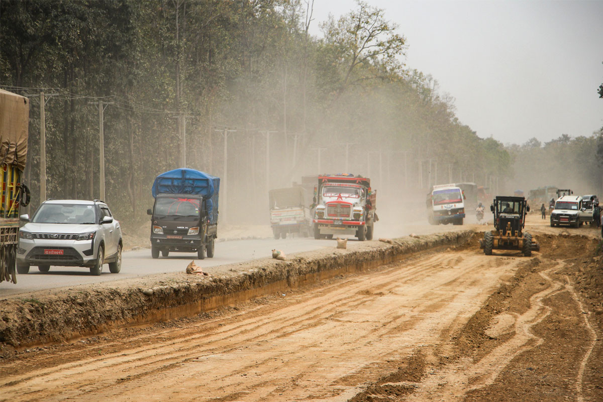 दशैँका अवसरमा सार्वजनिक सवारीसाधनबाहेक पनि दुईपांग्रे र चारपांग्रे निजी सवारीमा काठमाडौँ छाड्ने र भित्रिनेको संख्या पनि लाखौँमा हुने गरेको छ। लाखौँ मानिस सवार हुने हजारौँ सवारीसाधनलाई थेग्नेगरी सडक संरचना निर्माण गरिएको छ त? जानकारहरू सडकको अवस्था राम्रो नभएको बताउँछन्। कतिपय स्थानमा सडक निर्माण भइरहेको छ भने कतिपय स्थानमा मर्मतसम्भारको काम चलिरहेको छ। विशेषगरी काठमाडौँ भित्रने प्रमुख नाका नागढुंगादेखि धादिङतर्फको सडकमा धमाधम स्तरोन्नति भइरहेको छ।