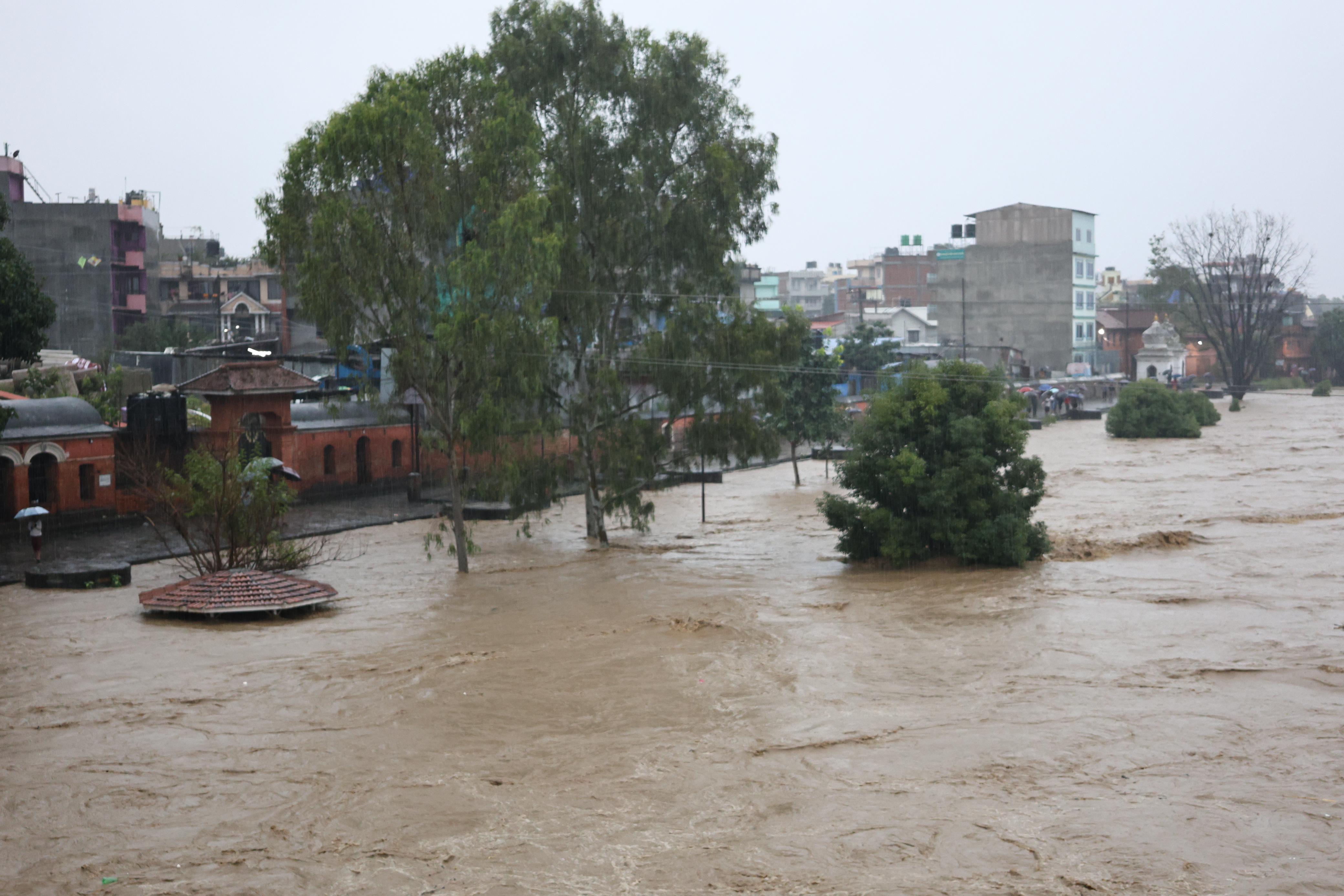 काठमाडौँ– अविरल वर्षाका कारण काठमाडौँ उपत्यकाका नदी तथा खोला उर्लिएका छन्।