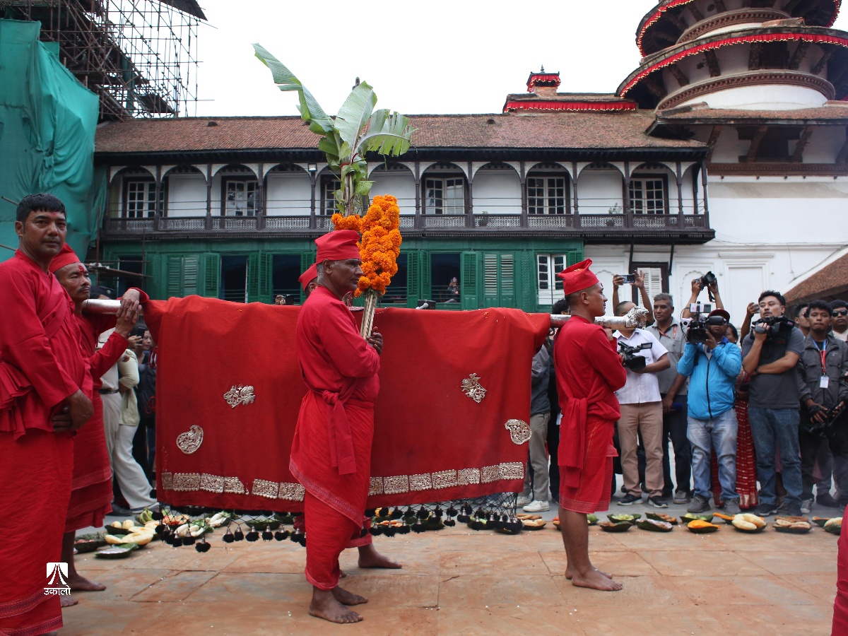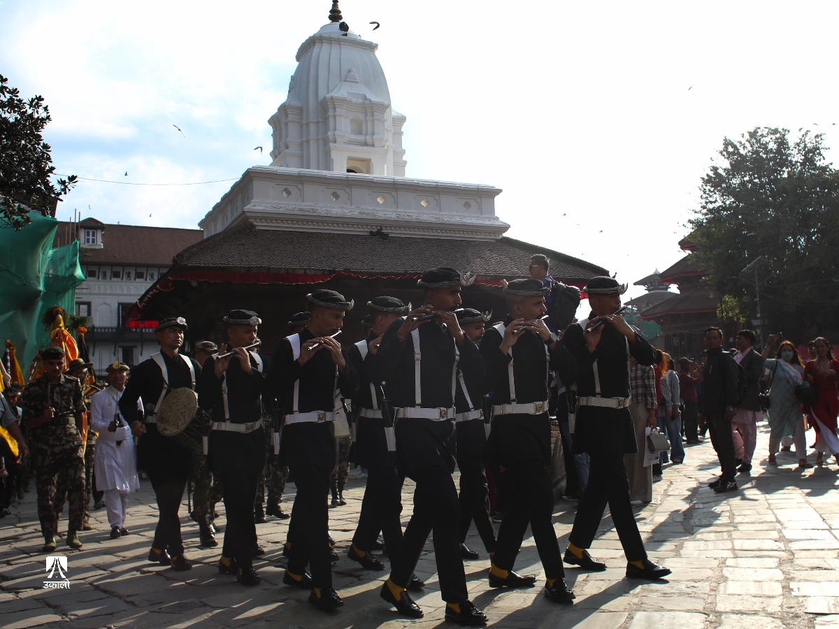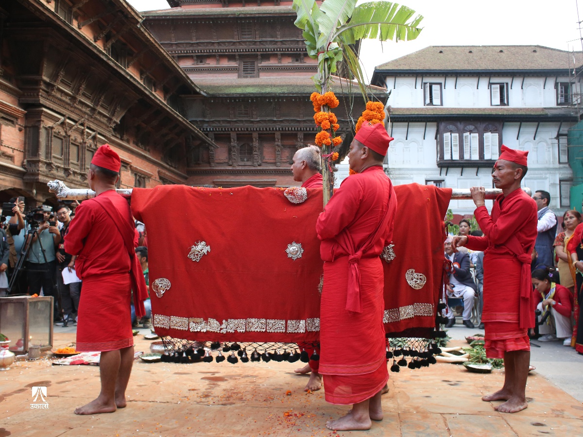 बडादशैँको सातौँ दिन बिहीबार हनुमानढोका दरबारको दशैँघरमा गोरखाबाट ल्याइएको फूलपाती भित्र्याइएको छ।