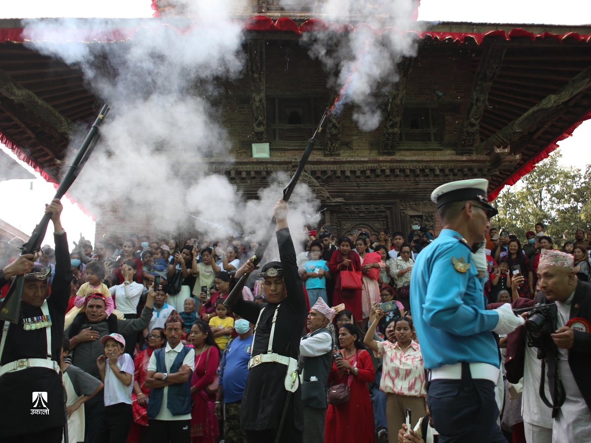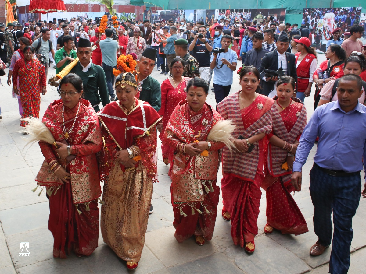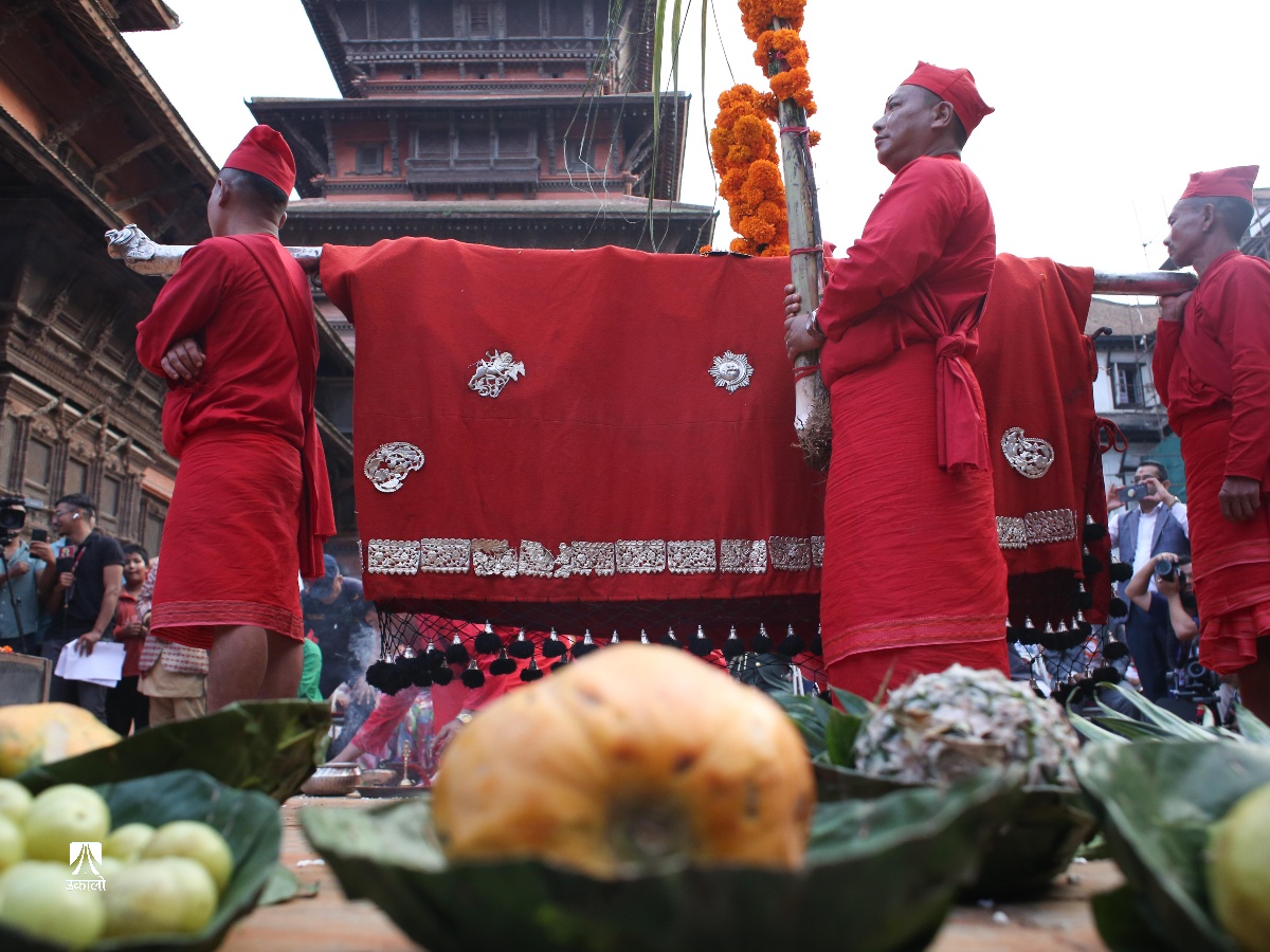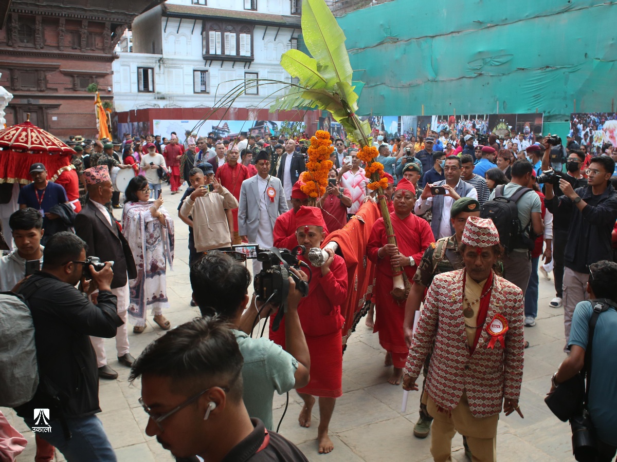 बडादशैँको सातौँ दिन बिहीबार हनुमानढोका दरबारको दशैँघरमा गोरखाबाट ल्याइएको फूलपाती भित्र्याइएको छ।