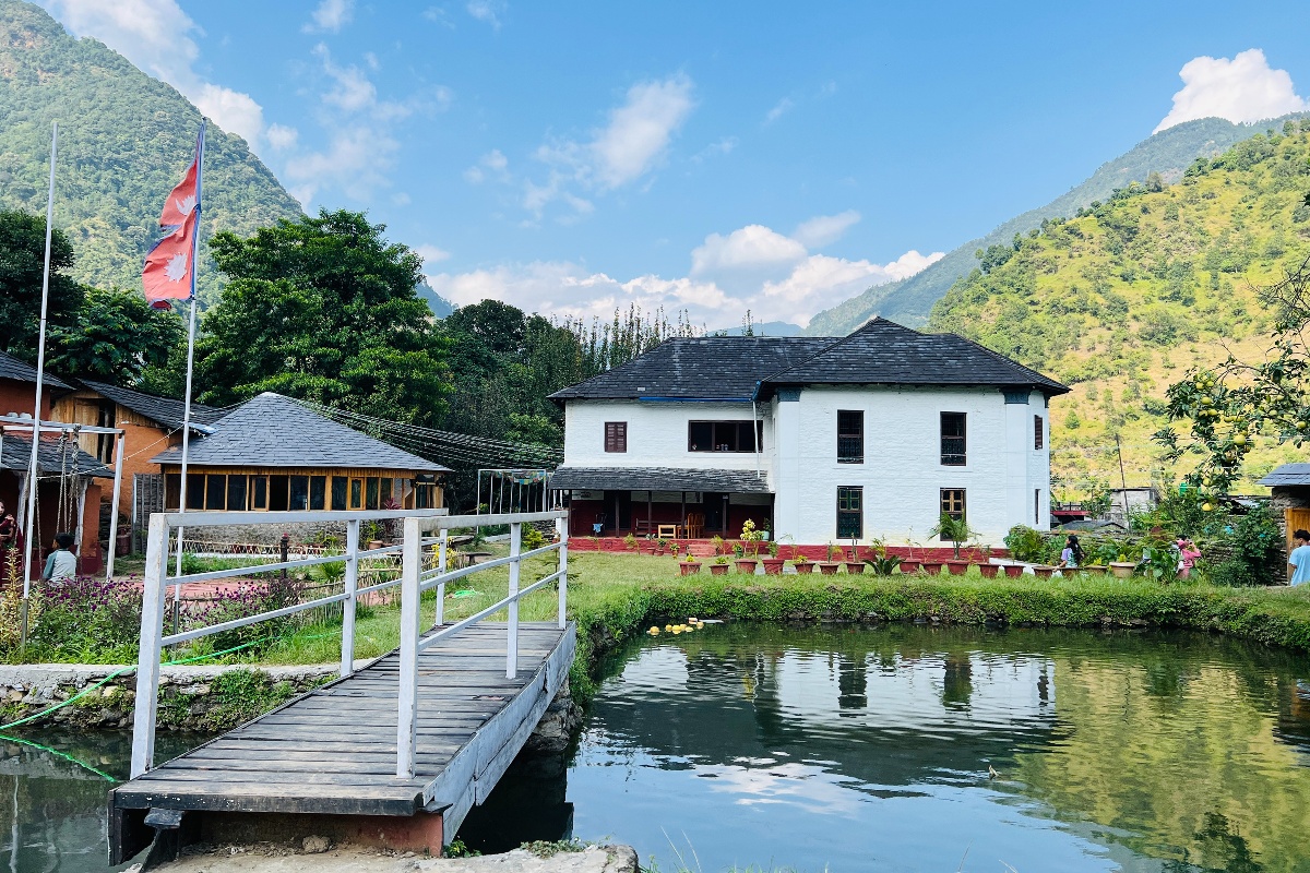 १९७९ सालमा निर्माण भएको दरबारको जीर्णोद्धार गरेपछि चिटिक्क परेको छ। टेउवाको मूर्तिकला र गाईघाट झरनाबीचमा रहेको दरबार पर्यटक आकर्षणको केन्द्र बन्दै गएको छ। दरबार परिसरमा तस्वीर खिच्ने, टिकटक बनाउने र मनोरञ्जन लिनेको भिड देखिन्छ।