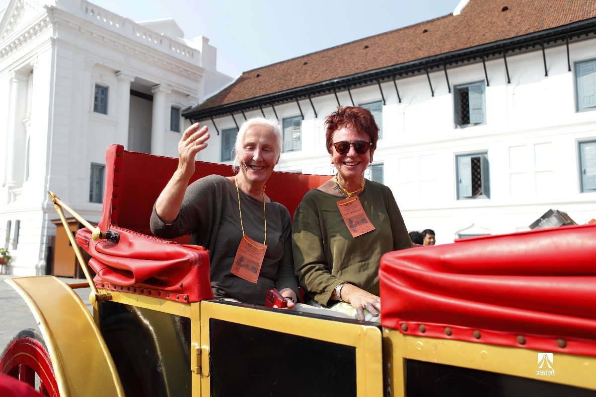काठमाडौँ– हरेक वर्ष सेप्टेम्बर २७ मा विश्वभर मनाइने विश्व पर्यटन दिवस शनिबार राजधानीको काठमाडौँस्थित दरबार स्क्वायरमा विभिन्न कार्यक्रम आयोजना गरी मनाइएको छ। सेप्टेम्बर २७ मै मनाउन लगाएको सो कार्यक्रम भारी वर्षाका कारण रोकिएपछि शनिबार मनाइएको हो। काठमाडौँ दरबार स्क्वायर पर्यटन प्रवर्द्धन संघ र विभिन्न स्थानीय क्लबको सहकार्यमा आयोजना गरिएको सो कार्यक्रममा परम्परागत नेवारी सांगीतिक प्रस्तुति, नेपाल प्रहरीको ब्यान्ड प्रस्तुति, कुटुम्ब ब्यान्डको प्रस्तुति रहेको थियो। कार्यक्रमको प्रमुख आकर्षण भने करिब एक हजार कलाकारद्वारा धिमे बाजामा सामूहिक नृत्य प्रस्तुति रहेको थियो। हेर्नुहोस् तस्वीरहरू: