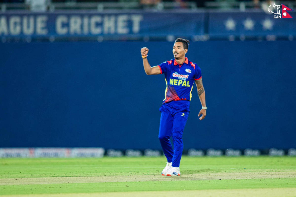 अमेरिकाका आन्द्रेस गुसले सर्वाधिक ६२ तथा साइतेजा मुखमलले ४७ रन बनाए। नेपालका करण केसीले ३ र सोमपाल कामीले २ विकेट लिए। सागर ढकार र दीपेन्द्रसिंह ऐरीका नाममा समान १/१ विकेट रह्यो।