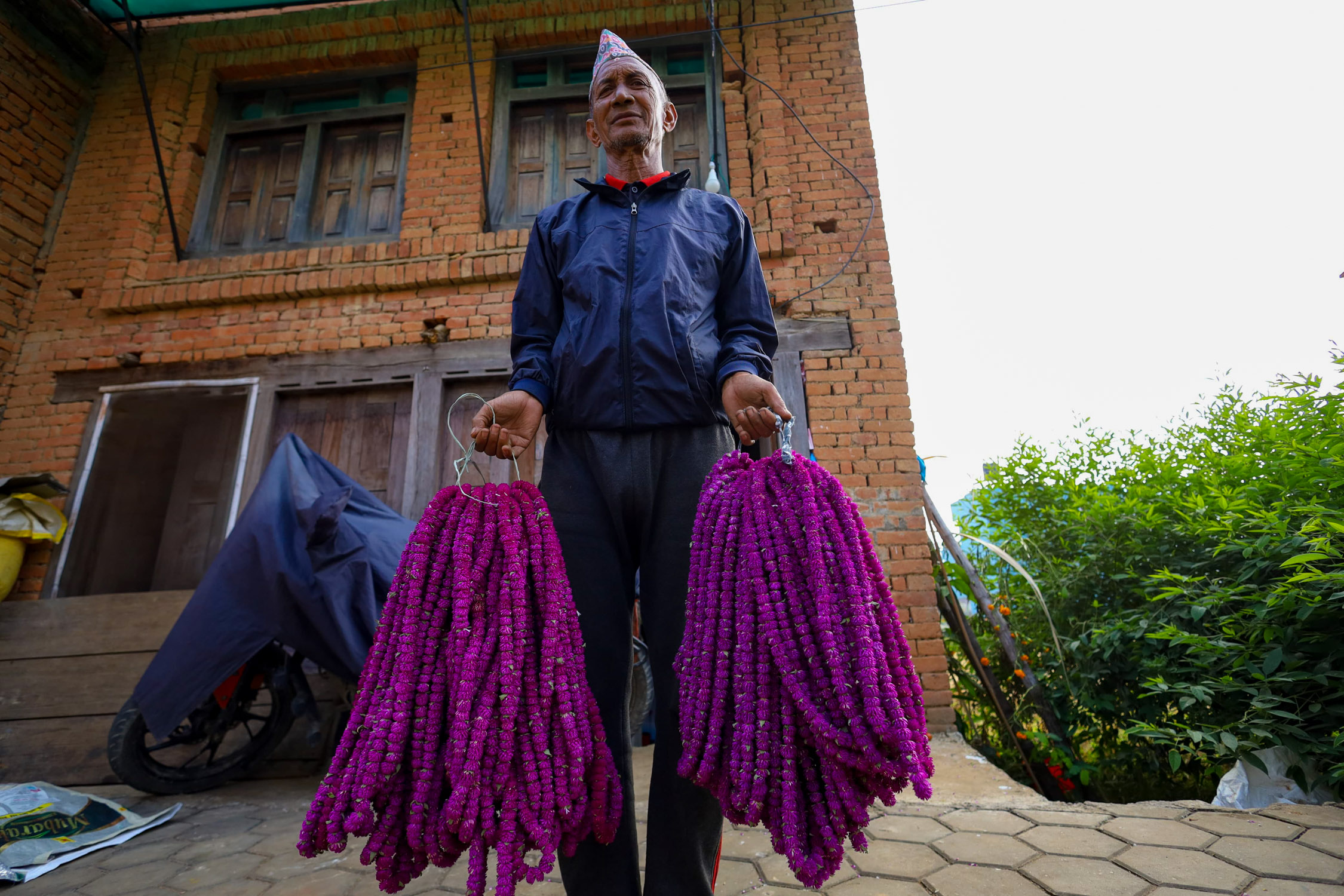 काठमाडौँ– तिहारको आगमनसँगै भक्तपुरको सूर्यविनायक नगरपालिका–७ गुन्डुका किसान मखमली फूल टिप्न र माला गाँस्न व्यस्त छन्।