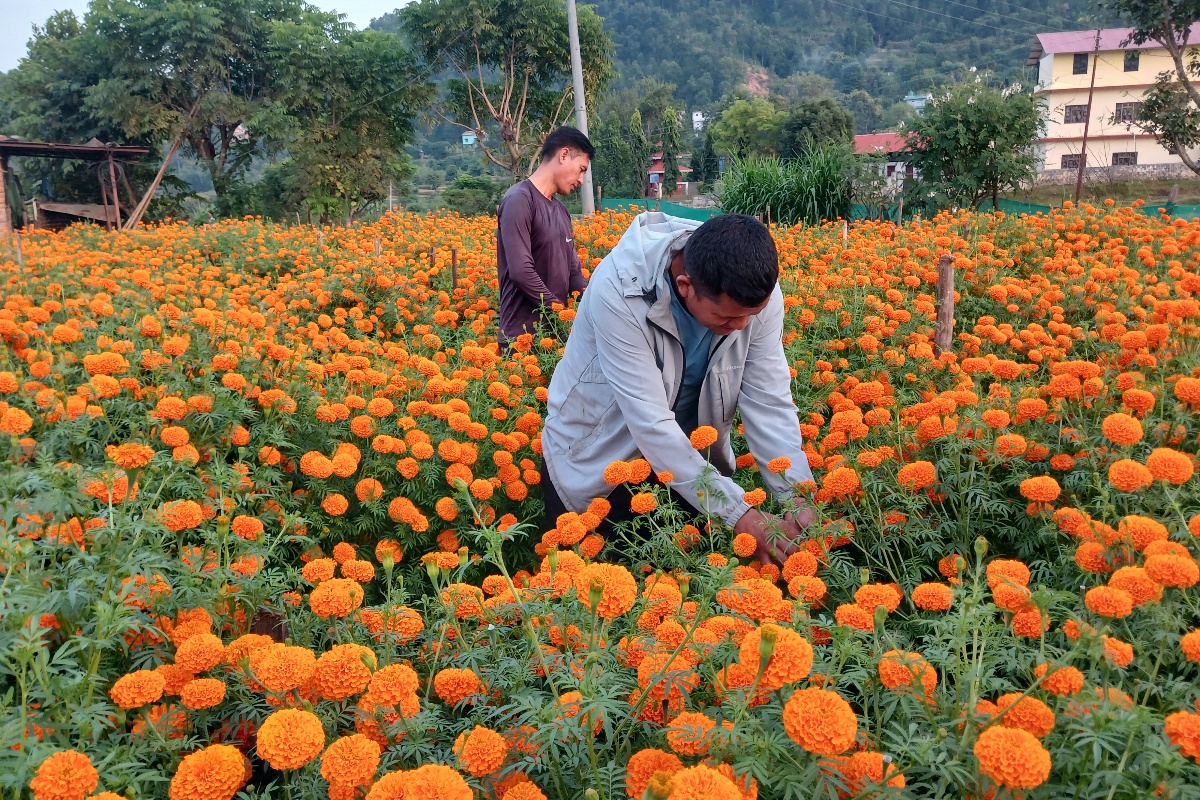 चार रोपनी क्षेत्रफलमा फूलखेती लगाएका छन्। तिहार पर्वलाई लक्षित गरी लगाइएको फूलले राम्रो आम्दानी दिएको छ। यस तिहारमा २ लाखदेखि २ लाख ५० हजार रुपैयाँसम्म आम्दानी हुने अनुमान छ।