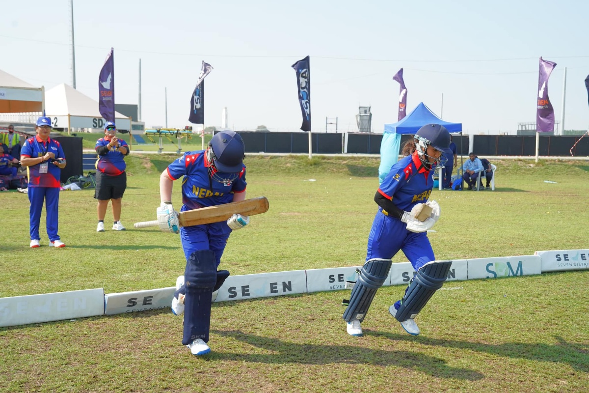 नेपालकी कप्तान पुजा महतोले सर्वाधिक ३४ रन बनाइन्। उनले ३८ बलमा ४ चौका प्रहार गरेकी थिइन्। साना प्रविनले १८ बलमा २५ तथा ज्योत्सनिका मरासिनीले १८ बलमा २३ रन जोडिन्।
