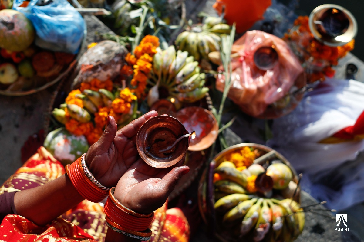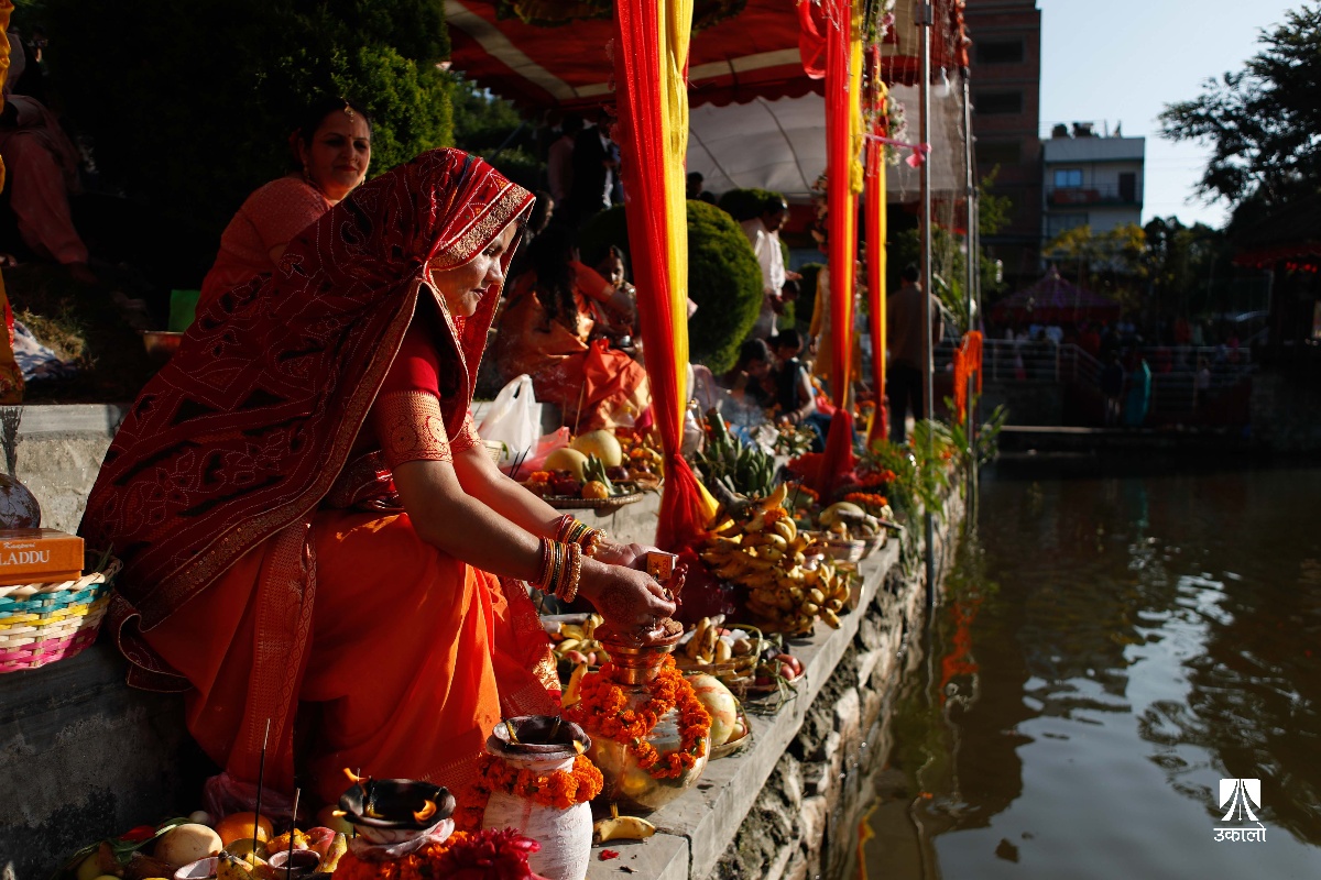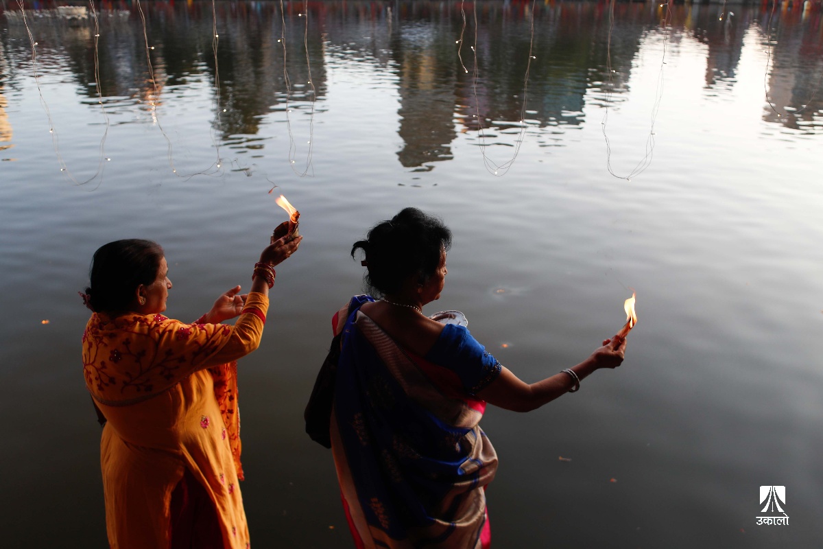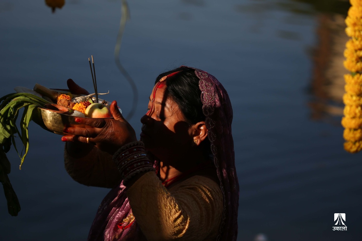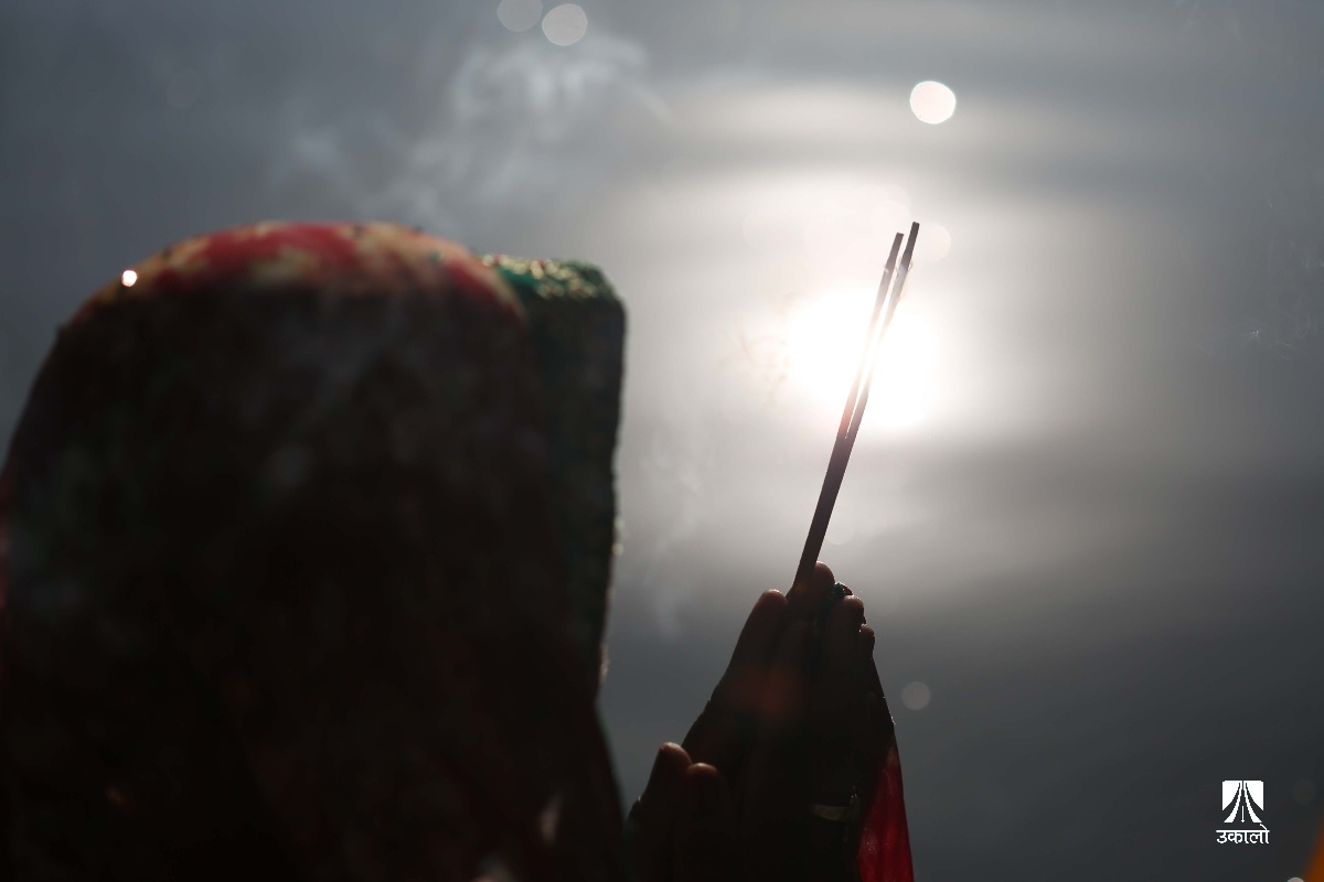 काठमाडौँ– अस्ताउँदो सूर्यलाई अर्घ्य दिएर तेस्रो दिनको छठ पर्व मनाइएको छ। चार दिनसम्म मनाइने छठको तेस्रो दिन व्रतालुले कमलपोखरी किनारमा भेला भएर अस्ताउँदो सूर्यलाई अर्घ्य दिएका हुन्। यस्तै, बिहीबार देशभर पोखरी, तलाउ तथा नदी किनारमा निर्माण गरिएका छठघाटमा अस्ताउँदै सूर्यलाई व्रतालुहरूले अर्घ्य दिएका छन्। भोलि शुक्रबार बिहान उदाउँदो सूर्यलाई अर्घ्य दिएपछि विधिवत् रूपमा छठ पर्व सकिनेछ। यस्तै, गुह्येश्वरीमा पनि अस्ताउँदो सूर्यलाई अर्घ्य दिइएको छ। अर्घ्यका रूपमा सुपारी, इलाइची, ल्वाङ, सिन्दुर चढाउने परम्परा छ। हेर्नुहोस् तस्वीरहरू :
