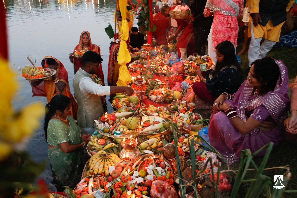 व्रतालुहरूले पोखरी, तलाउ तथा नदी किनारमा निर्माण गरिएका छठघाटमा अस्ताउँदै सूर्यलाई अर्घ्य दिएर तेस्रो दिनको छठ पर्व मनाएका छन्।