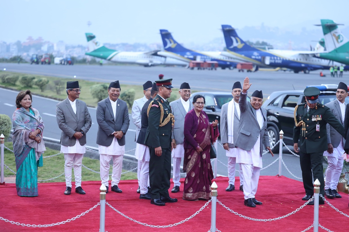 बाकु प्रस्थान गर्नुअघि उनलाई त्रिभुवन अन्तर्राष्ट्रिय विमानस्थलमा उपराष्ट्रपति रामसहायप्रसाद यादव, प्रधानमन्त्री केपी शर्मा ओली र प्रतिनिधिसभाका सभामुख देवराज घिमिरेलगायतले बिदाइ गरेका थिए।