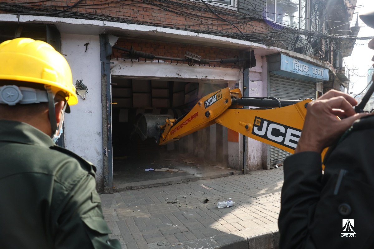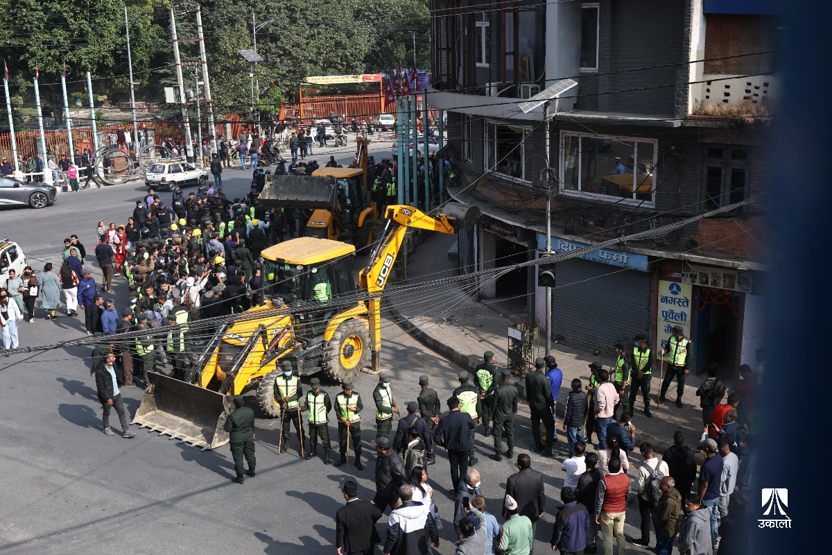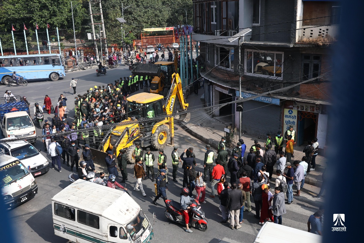 काठमाडौँ महानगरपालिकाको नगर प्रहरीले गौशाला क्षेत्रमा रहेका अनधिकृत संरचनामा डोजर चलाएको छ।